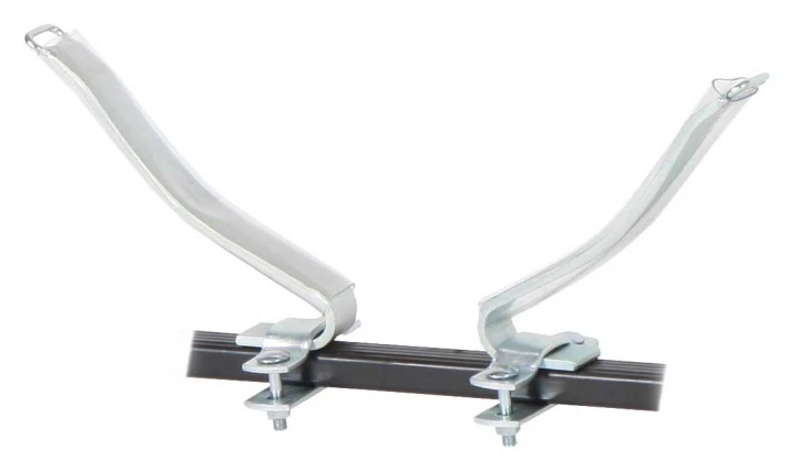 Stabile Bügel aus verzinktem Stahl zur Befestigung von Zweierkajaks und Canadiern auf dem Dachträger. Die Bügel lassen sich auf die jeweilige Bootsbreite anpassen, mit Kunststoffüberzug.